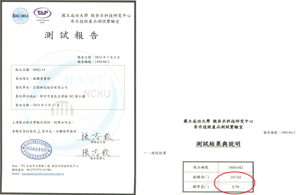 | 附著性 | 5B | 3M scotch 600 膠帶 | ASTM3359 |